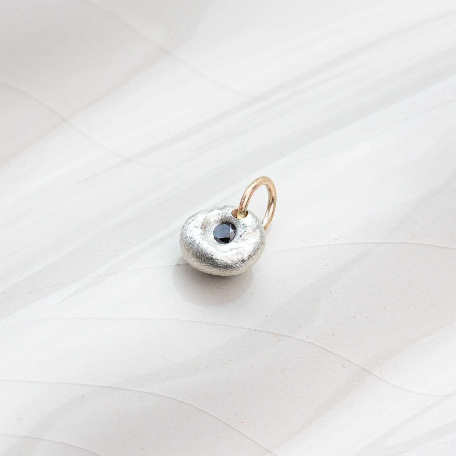 Anchor is a delicate, one-of-a-kind pendant handcrafted in Argentium silver and set with a natural black diamond measuring approximately 2.5 mm, finished with a fully hallmarked 9 ct gold bail. Sculpted in an organic form and created with precision and care, this piece reflects AMONTA jewellery’s commitment to craftsmanship, authenticity, and lasting quality.